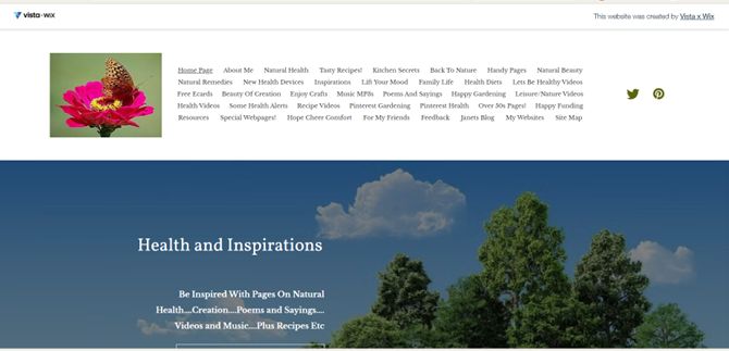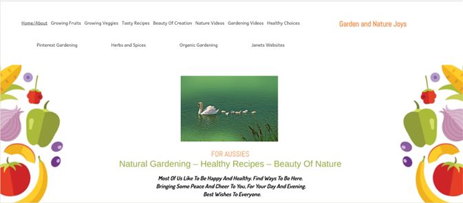 This Website has lots of Inspirational Content, plus Gardening, Nature Pictures and Videos, plus Links to Recipe Collections I run, plus Pleasant Poems etc. It was designed to bring Cheer and Pleasant Content and Natural Health Tips to those who are not well and Everyone likes it – so it is not limited at all in that respect and there isn’t negative Content. To the contrary, it is a Favorite to a lot of Folk who like to Visit there!
